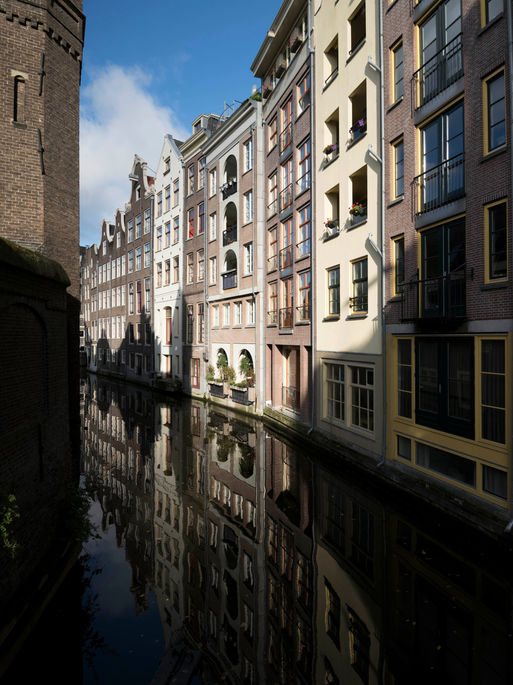 Ontwerp voor- en achtergevel, renovatie, interieurontwerp, omgevingsvergunningaanvraag, volledige traject-/bouwbegeleiding en het herstellen van een 16e eeuws beschilderd balkenplafond in de woonkamer van het aan de gracht gelegen appartement. Het plafond is het oudst bekende beschilderd plafond in een woonhuis van heel Nederland en is gedateerd op 1560. Fotograaf: Arjan Bronkhorst.